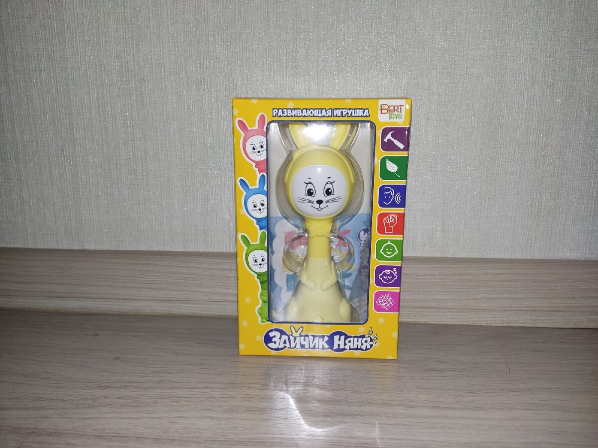 Близится самая волшебная ночь в году. У вас уже есть планы? Как вы собираетесь провести ночь с 31 декабря на 09 января? Нас пригласили в гости и я уже сейчас озаботилась вопросом подарка. Поедем в гости в семью, где трое детей: мальчик-подросток, девочка-трехлетка и еще один мальчик — малыш, которому недавно исполнился годик. Если с подарками для взрослых все понятно, с подростком и девочкой-трехлеткой тоже проблем нет, то что подарить маленькому ребенку, да еще и мальчику? В год ребенок вряд ли оценит книжку, одежду или посуду, плюс хочется подарить то, что понравится не только малышу, но и маме. Долго думала, искала что-то оригинальное и полезное, наконец, нашла! Подарим малышу развивающую игрушку Зайчик Няня. Заказала на Ozon, бесплатная доставка в течение 3 дней, но нам привезли на день раньше. Доступны разные цвета: голубой, розовый, зеленый, желтый. Мы выбрали желтый, ведь этот ребёнок — настоящее солнышко, очень позитивный и улыбчивый малыш. У игрушки 12 режимов и она поможет ма