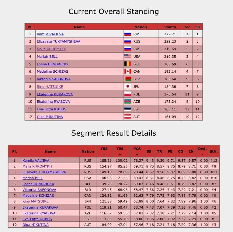 1) Камила Валиева (Россия)