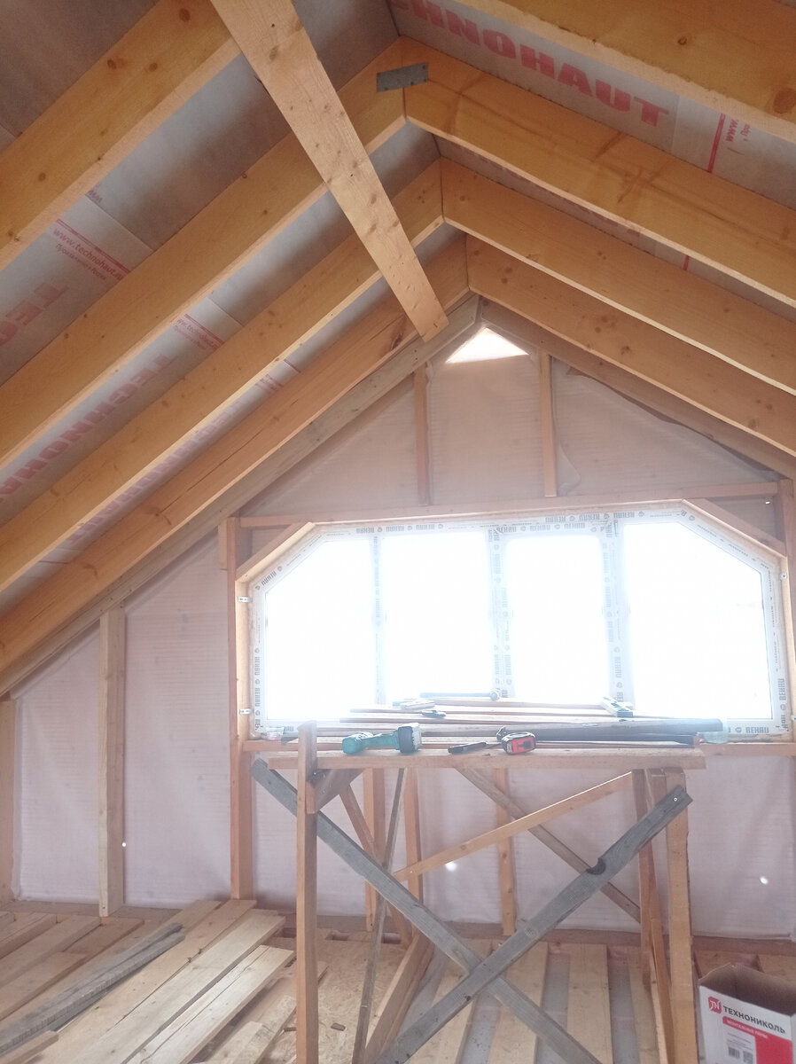 Очень долго выбирал на каком варианте утепления мансарды остановиться. Были варианты: Прочитал огромное количество отзывов, обзвонил много компаний. И в итоге выбор пал на эковату. Это переработанная целлюлоза, с добавлением антипиренов и обработкой от мышей. Пробовал поджечь - реально не горит. Созвонился с подмосковной компанией и договорился на утепление через неделю. Изначально крыша была в таком виде Мне нужно было сделать полость для задувки эковатой. Смонтировал пароизоляцию B, и обрешётку, получилось так В обговоренное время приехали 2 ребят на Газеле. Осмотрели объем работ, похвалили за хорошую подготовку) получилось 100м2 Цена за м2 200мм утепления - 700р Начали утеплять в 12 часов В кузове установлена установка для задувки, в дом протянут шланг сантиметров 8 в диаметре. Один человек закидывает упаковки в установку, другой распределяет шлангом в полости. В итоге получается очень плотное утепление Закончили утеплять где-то в часов 19.00 В итоге мне все понрав