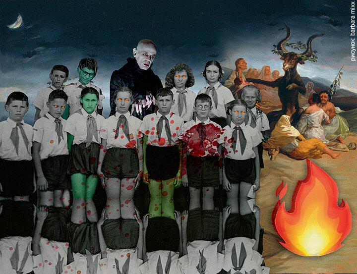 Ну а мы-то городские. Я же на Арбате родился — какая еще мистика? Вот только, пожалуй, та, которую мы сами себе и устраивали, надевая на себя простыни в пионерлагере. Мы сами себя отлично подзаводили: надевалось-то это все со смехом, а потом нагнетали, нагнетали и сами себя уже пугались, ну а девочки-то в настоящую истерику впадали. Нас за выходки такие потом наказывали, но наказания были чисто условные. Угроз выгнать из лагеря — нет, таких жесткостей не было, потому что наши пионервожатые все-таки тоже были советскими парнями, вчерашними пацанами, обожавшими точно такие же развлечения. Кроме ряженок, то есть простыней и пасты по всей роже, самым крутым развлечением нашего детства 50-х был еще футбол, конечно, а у девчонок из спортивных игр самым популярным был бег наперегонки по дорожке. И уже потом, гораздо позже, в пионерлагерях стали по вечерам показывать фильмы, и примерно тогда же пионеры по ночам, после отбоя, стали нагонять жути историями, как в «Пищеблоке»: «В черной-черной комнате был черный-черный человек… Отдай мое сердце!» Ну и все пацаны и девчонки СССР всегда, конечно, ждали пионерского костра в конце смены. Там тоже можно было пошкодить.