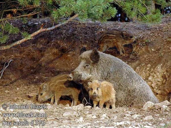 Дикая свинья может родить до шести детенышей за раз в естественных условиях.