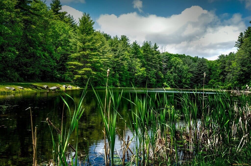 В лесу вы можете найти грибы, в основном лисички, но попадаются и рыжики
