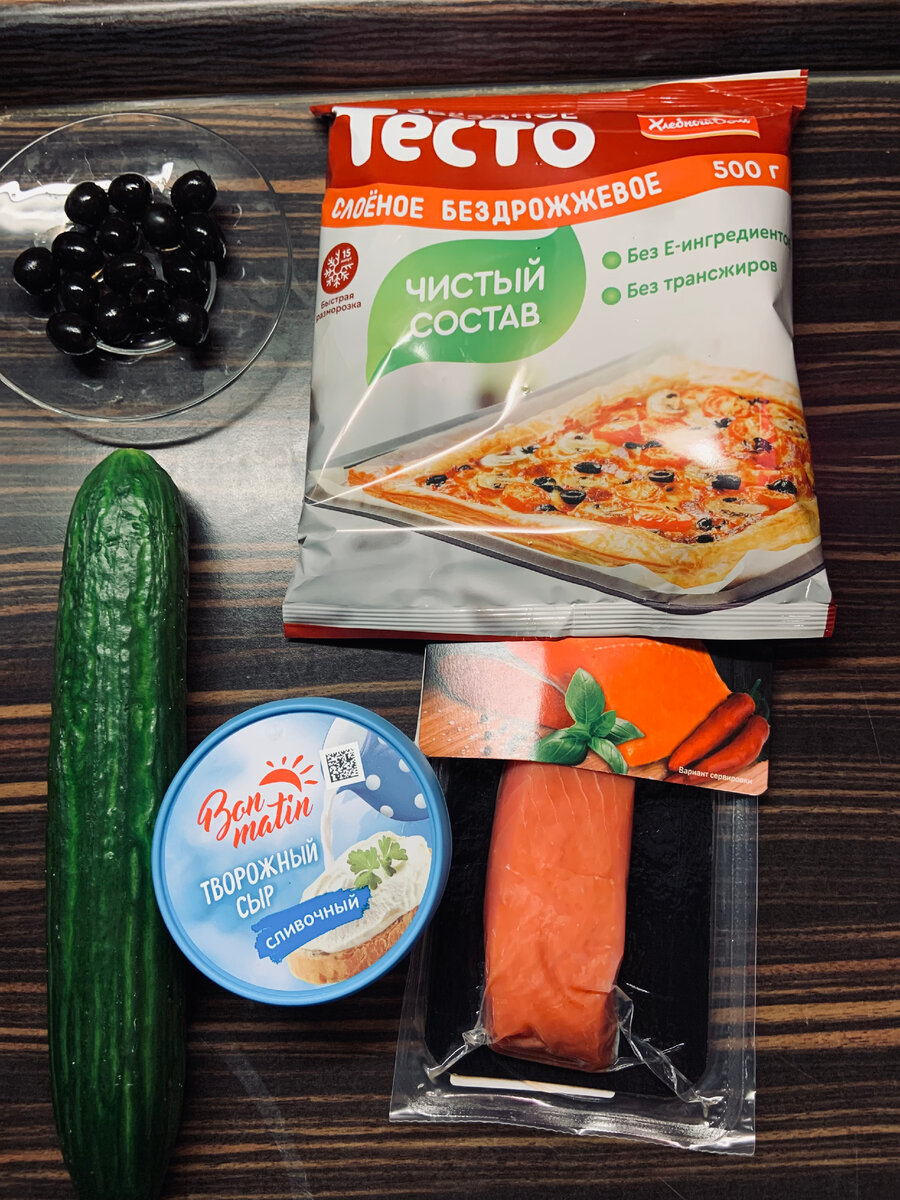 - слоеное бездрожжевое тесто- 1 упаковка;