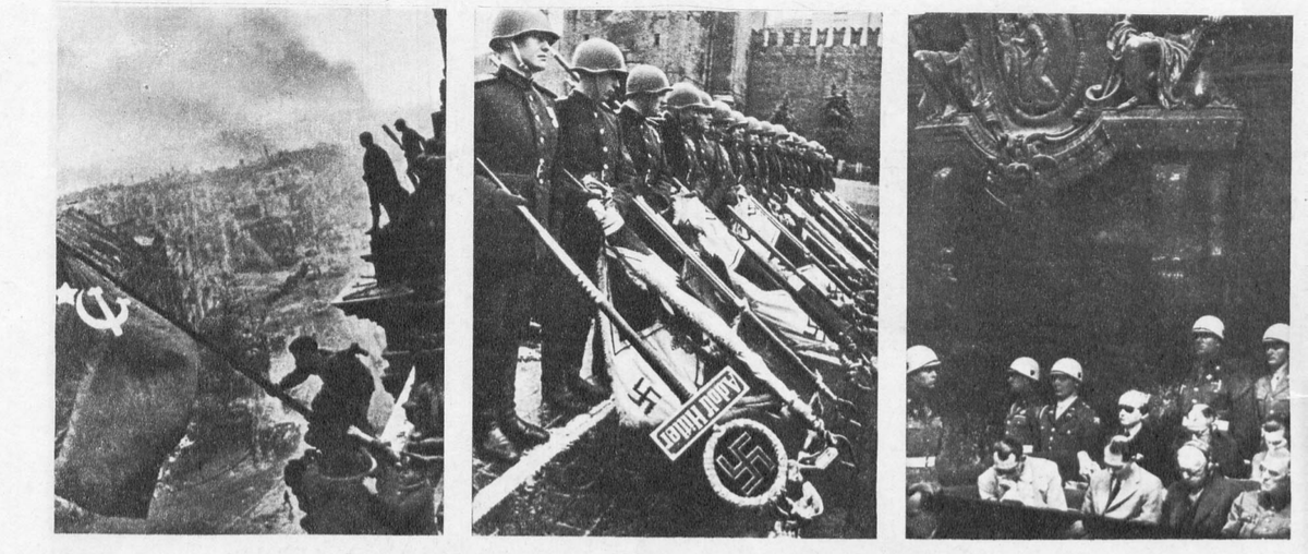 Листая журнал "Советское фото", я наткнулся на знаменитые фотографии великого советского фотокора Е. Халдея. Как минимум две из них видел каждый - знамя победы над Рейхстагом, поверженные знамёна Третьего Рейха на Красной площади, ну и менее знаменитое фото с Нюрнбергского процесса. И представьте себе, оказалось, что это триптих! И называется он "Победа". Это очень сильный ход, который заставляет как следует задуматься. Флаг над Рейхстагом - ещё не Победа, даже поверженные знамёна ещё не Победа. Победа - не результат, Победа - процесс! И завершение этому процессу - процесс Нюрнбергский. Закончился он лишь 1 октября 1946 года. До Берлина шли почти 4 года. До Победы же оставалось ещё полтора года! Триптих получил Золотую медаль Международной фотовыставки, посвященной 100-летию со дня рождения В.И. Ленина. Главный приз тогда достался другому советскому фотокорреспонденту - Валентину Соболеву. На триптихе ниже перед нами предстает сам Евгений Ананьевич. На двух крайних фото он со своей Lei