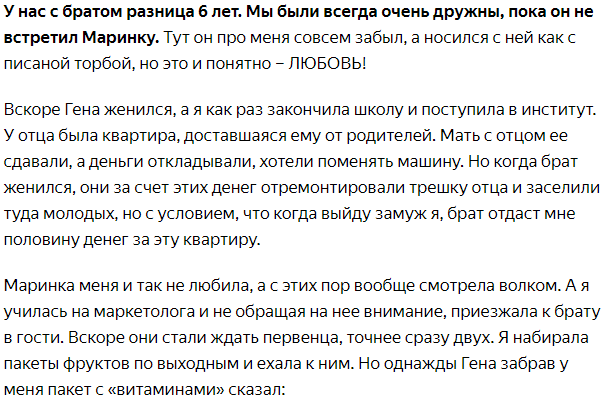- Лиза, тебе, что в выходные больше делать нечего? Марина тебя не любит, в ее положении нервничать нельзя! Не приезжай к нам!
