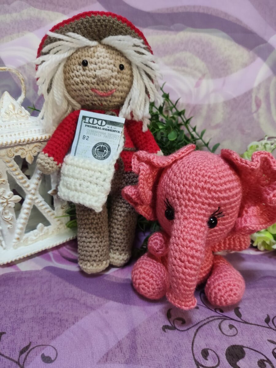 Новое увлечение захватило меня. Вязание крючком не новое, новое это игрушки вязать. Сколько хочется всего навязать и радовать других людей, особенно маленьких деток. Племянница уже ждёт от меня посылку и спрашивает какие игрушки я ей подарю. Все игрушки я плету по чужим мастер классам. Самой пока сложно что то придумать. Новый домовой в шляпе и слонёнок. Пупсик Йо- Йо, шапочка и шарфик снимаются и девочка в костюме зайчика. Пока всё, уже начала другое вязать, скоро покажу.....