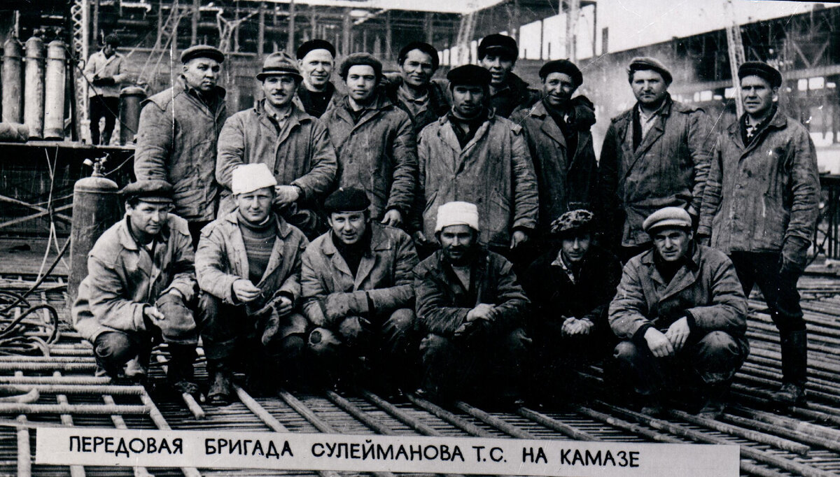 Когда смотришь на фотографии строительных бригад, участвовавших в создании небывалого в истории комплекса заводов по производству большегрузных автомобилей, то обращаешь внимание на то, что бригадиры не лезли в центр кадра. А ведь на строительстве КАМАЗа звание бригадира было поднято на небывалую до этого высоту. При огромных масштабах работ роль бригады была определяющей. Бригады по численности скорее походили на участки, а с учётом передаваемых в их распоряжение студенческих, солдатских и прочих отрядов временных рабочих, иногда достигали уровня обычного СМУ. Численность бригад достигала до 100 человек! В такой ситуации бригадир становился весьма весомой фигурой. Утвердиться в роли бригадира мог далеко не каждый. Как правило, это были талантливые организаторы, прирождённые лидеры, не имеющие высшего образования, но обладающие солидным опытом строителей. Вспоминает Абдуллин Нигматулла Тухватуллович - бригадир СМУ-12 УС «Промстрой», Герой Социалистического Труда (1981): «После сдачи