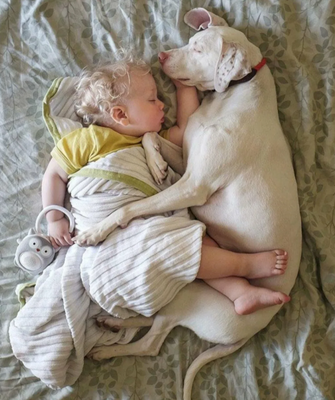 Малыш мило спит со своим ушастым другом в обнимку