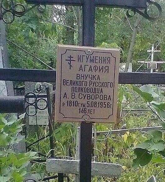 Внучка великого Александра Суворова - Агриппина Ильинична Суворова родилась в 1810 году, а умерла в в 1956. Она прожила 146 лет.