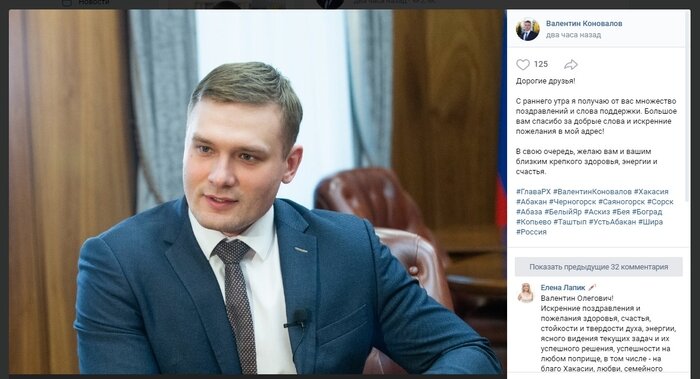Свой день рождения глава Хакасии Коновалов отметит в Москве