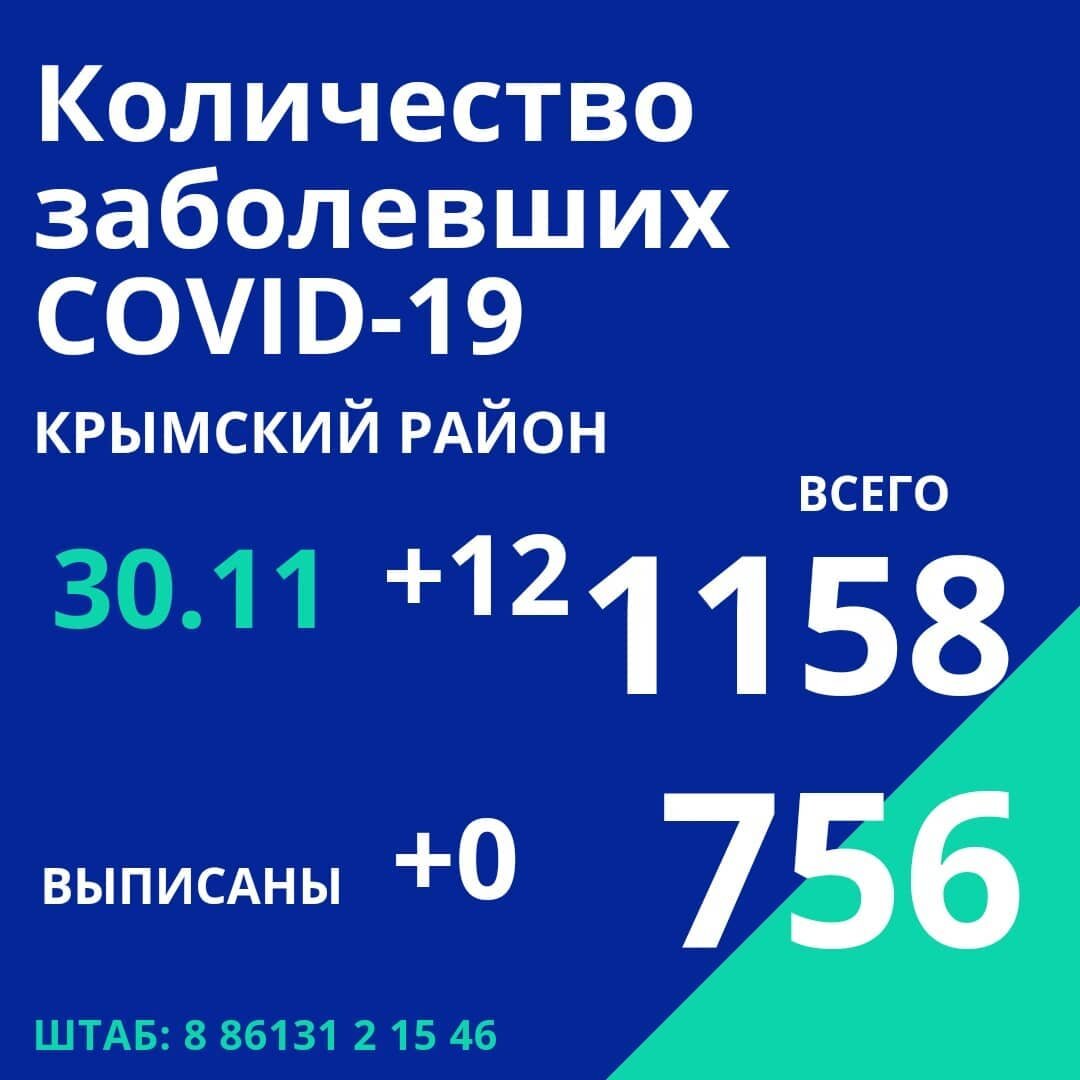 30 ноября по информации оперативного штаба Краснодарского края в Крымском районе 12 новых случаев заражения коронавирусной инфекцией.⠀