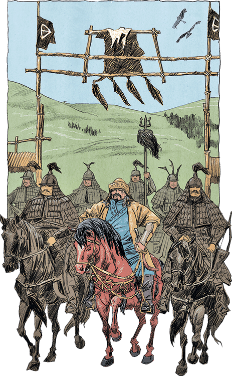 Одним из первых указов великого хана объединенной Монголии было учреждение постоянной дружины телохранителей. Она называлась кэшик и состояла из тысячи отборных воинов. Со временем этот полк разросся до целого тумена, то есть десятикратно увеличился. Армию собирали по становьям только на время войны, кэшик же существовал на постоянной основе. Случалось, что это соединение использовали и в бою, в решающий момент генерального сражения, но главной функцией кэшика была охрана ханской ставки и – гораздо шире – державы. Именно кэшик уничтожал заговорщиков и смутьянов из числа родственников и приближенных правителя. В привилегированный корпус кроме доблестных багатуров попадали сыновья военачальников, так что кэшик представлял собой нечто вроде аристократической лейб-гвардии, служба в которой была престижна и открывала путь к большой карьере. Даже рядовой воин кэшика по своему положению стоял выше армейского тысячника, который не смел перечить гвардейцу, подсудному лишь самому