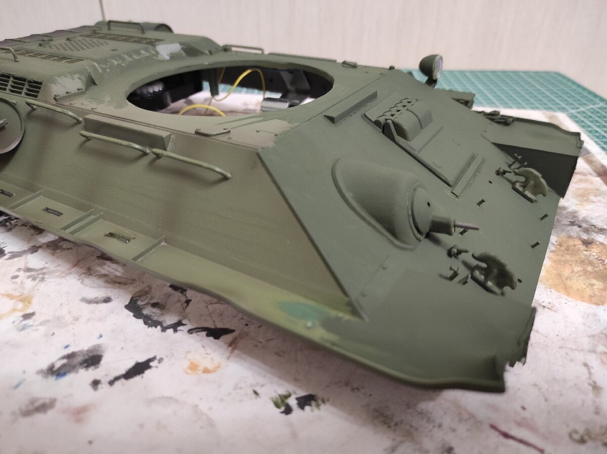 Покраска радиоуправляемого танка в защитный цвет 4БО, и как я имитировал грязь и копоть на броне (много фото)