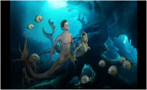 Есть особи с рыбьей головой и рыбьим хвостом, чешуйчатые, как описано в рассказе. Кстати, космы – это не волосы, а некие сенсоры, грубо говоря, уши и нос. Они способны улавливать звуки и запахи. Есть с рыбьим хвостом, но торсом и головой очень похожими на человеческие, а есть и просто с ногами, но с удлинёнными кистями рук и стопами с перепонками. Вот эти около трёх метров, просто огромные.