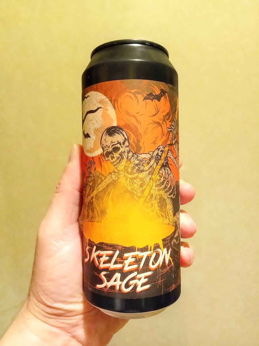 Два Хэллоуина подряд я пытался купить какое-нибудь тыквенное пиво, поскольку никогда такого не пробовал. Не складывалось. Зато в этом году, уже после этого чуждого нам праздника, удалось достать пиво Skeleton Sage (Скелет-мудрец), сваренного московской пивоварней Selfmade Brewery (которая вместе с пивоварней "Чаща" находится на вышеупомянутой улице, причем в одном здании). Врубим чего-нибудь в тему (про скелетов, а не про Хэллоуин) и продолжим. Оформление банки, как обычно у данной пивоварни, на высоте - изображен скелет, который варит в котле какое-то колдовское зелье. Либо, судя по цвету, тыквенное пиво. Кстати, тыкву с детства не терплю - меня тогда перекормили всякими тыквенными кашами, тыквенными пирогами и прочей продукцией из этого овоща. Так что не знаю, вдруг у меня организм это пиво не примет. Впрочем, будем надеяться, что меня за 40+ лет отпустило. На "тапке" стиль пива заявлен как Sour - Smoothie / Pastry, т.е., говоря по-русски, это тыквенный смузи кисляк со вкусом/арома