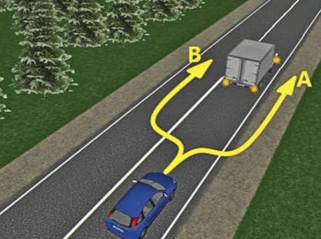 Сегодня мы поговорим о задаче, на которую не всегда могут ответить даже самые опытные и компетентные водители. Что мы можем сказать о реальности. Более того, задание не ставится на экзаменах, потому что процент правильных ответов невелик. Итак, как вы можете видеть на картинке, на дороге стоит грузовик с включенным аварийным освещением. По какой траектории его можно обойти? Представьте, что вы ведете машину. Что бы вы сделали? Для начала следует понимать, что есть только два варианта объезда – слева по встречной полосе с пересечением сплошной линии разметки или справа по обочине. Так, если вы объедете грузовик с противоположной стороны с нарушением сплошной линии разметки, это будет считаться очень грубым нарушением, за которое вы можете лишиться прав или заплатить хорошую сумму согласно части 3 статьи 12.15 КОАП. Затем есть объезд по обочине дороги, но это тоже неправильный ответ. Согласно пункту 9.9 правил дорожного движения, в такой ситуации категорически запрещается выезжать
