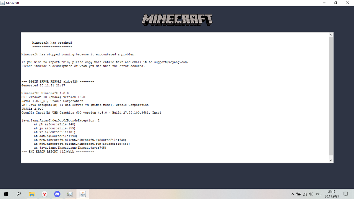 Всем хай! В общем, я не знаю что не так... Сегодня хотел запустить стрим и новую часть по этому выживанию сделать, но когда я начал заходить, то начало выдавать такую ошибку! Причём это только при нажатии на одиночную игру, в сам майнкрафт спокойно входит... Что с этим делать? Кто то знает? Переустановка майнкрафта не помогла. Ошибка вновь вернулась после захода в мир.