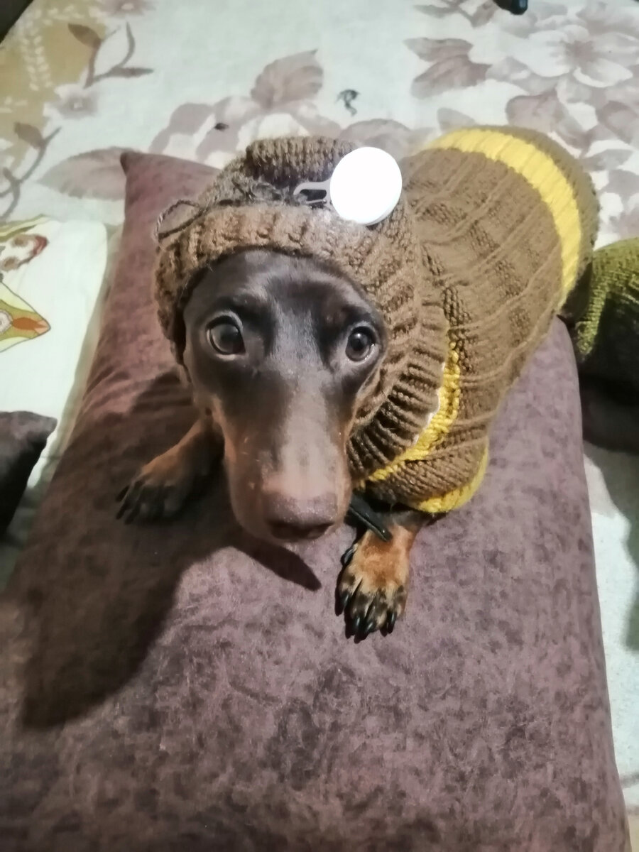 Добрый вечер всем кто зашёл на мою страницу. Она посвящена самым лучшим существам на свете - собакам породы такса и не только))) Иногда я отклоняюсь от "темы" и пишу совсем не о собаках. Ну тут от настроя зависит. Сразу оговорюсь на звание писателя не претендую. Решила попробовать себя в новом хобби. Заходя на Дзен, постоянно видела видео различных собачек, кошечек. И решила а чем мои хуже. Тем более бывают и смешные моменты. Ну вот например где Черчиль тянет Дану за ухо а она притворяется бездыханной)) кому интересно посмотрите видео. Здесь у меня почему то вставить не получается. Жаль что не все что они вытворяют удаётся заснять. Пока возьмёшь телефон-все, момент упущен! Но иногда очень даже получается. Вот например в воскресенье, мы с мамой одели на Дану шапочку..... и сами посмотрите что получилось В данном случае горит фонарик, тот что на ошейник вешают чтобы собаку в темноте видеть. Ну не нашли мы брошки а шапочка великовата)) Мы с мамой две взрослые женщины хохотали как лоша