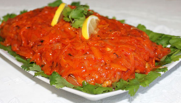 Рыба под маринадом Для этого блюда подойдет и жареная, и отварная рыба, приготовленная специально или купленная в кулинарии, ие говоря уж об остатках жареной рыбы, которые могут оказаться дома. Обработанную напластованную рыбу режут на куски поперек, начиная от головы, нож держат под углом 45°, Порционные куски филе нарезают от хвоста, положив филе внутренней стороной вверх. Куски отрезают наискосок, нож находится под углом 30°, тогда порции получатся более широкими и тонкими — для лучшего и равномерного обжаривания. Все жарится целиком, на коже вдоль делают надрезы, чтобы рыба не деформировалась, не изменила форму. Чтобы рыба была более сочной и нежной, ее предварительно замачивают в молоке и только перед самой жаркой посыпают солью, перцем, панируют в муке. Рыбу нужно класть только на сковороду с хорошо разогретым растительным маслом. Если жарить на нераскаленной сковородке, то быстро не образуется корочка, препятствующая потере сока,при этом рыба теряет не только сочность, но и в