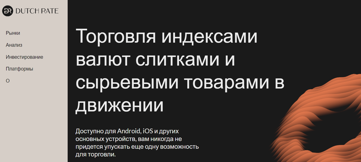 Информативностью, кстати, он тоже не блещет. Тут слишком мало полезных данных, зато сомнительных историй - хоть отбавляй. DUTCH RATE предлагают торговлю различными типами активов с любого устройства, что позволяет клиентам фирмы зарабатывать буквально на ходу.