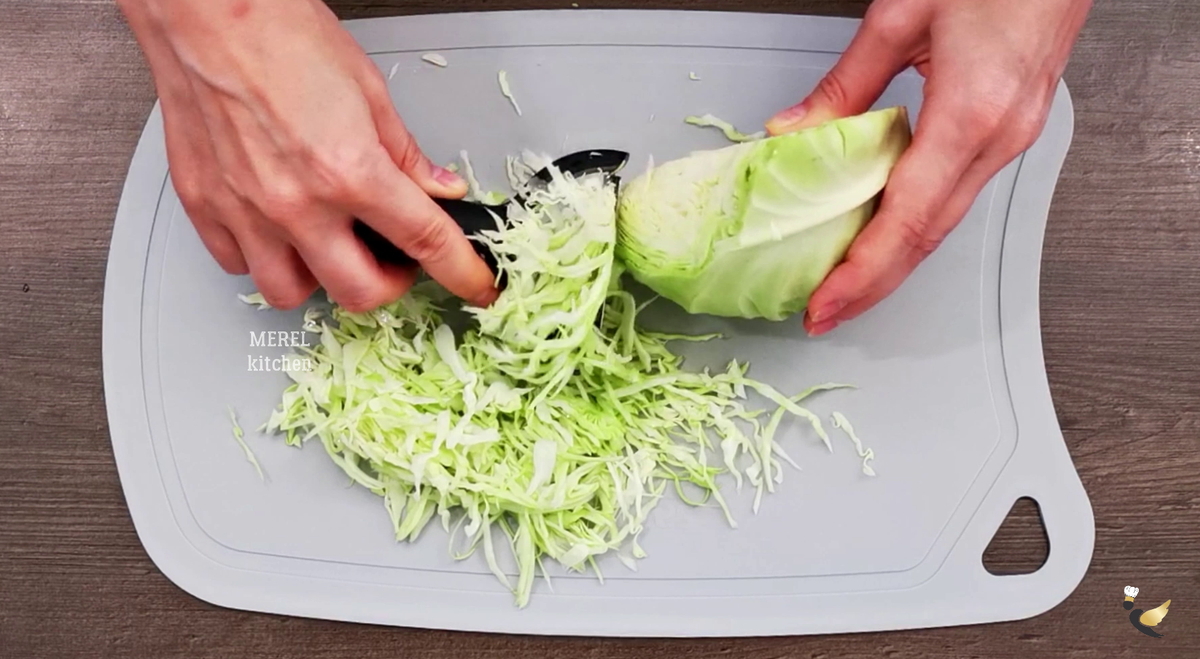Салаты с белокочанной капустой мои самые любимые - они вкусные, хрустящие, сочные, сытные и готовятся просто и из доступных продуктов. Сегодня поделюсь с вами двумя своими самыми любимыми и проверенными временем салатами, которые я готова есть хоть на ужин, хоть на обед, хоть на завтрак! Я уверенна если вы их приготовите, то заберете в свою кулинарную копилку. Первый салат "Осенний" с отличной и оригинальной заправкой, а второй салат - "Гасконский" - яркий и витаминный! У меня есть одна кулинарная хитрость, когда мне нужно очень тонко нарезать капусту я беру обычную овощечистку и использую ее для шинковки. Это самый удобный и быстрый способ, который я знаю - рекомендую попробовать. Для салата "Осенний" я беру ✔ половину небольшого кочана капусты и тонко ее шинкую с помощью овощечистки. Затем беру ✔ два огурца и нарезаю их небольшими дольками. После огурцов я беру ✔ стебли сельдерея - 3-4 шт и очень тонко их нарезаю. Особую пикантность салату всегда придает зелень, поэтому я беру ✔ о
