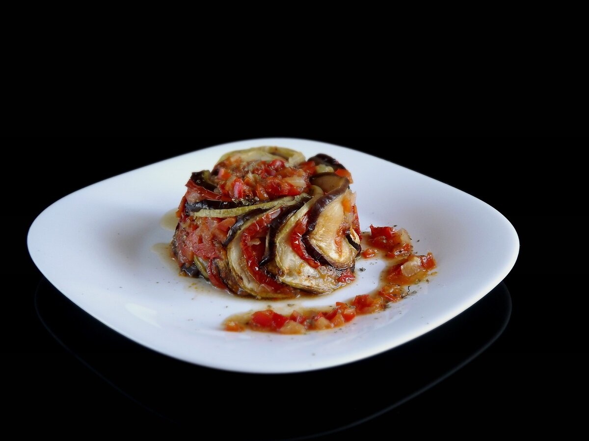 Предлагаю Вам запечь #овощи_в_духовке. #Рецепт_рататуй представляет собой овощи, запеченные в соусе. Соус готовится просто, но придает блюду нотки, свойственные такому знаменитому рататую). Овощные кольца можно разложить в определенной последовательности и получится очень красивое блюдо. А можно не заморачиваться и просто смешать их, что упростит и ускорит процесс приготовления. Нам понадобится: · томат в собственном соку – 800 гр. · помидор крупный – 4 шт. · баклажан – 2 шт. · цукини – 2 шт. · кабачок – 2 шт. · болгарский перец – 2 шт. красный и желтый · лук – 1 шт. · чеснок – 4 зуб. · базилик, петрушка, тимьян – по 3-4 веточки · оливковое масло – 10 ст.л. · перец черный молотый по вкусу · зелень для подачи Приготовление: 1. Овощи вымойте и обсушите. Помидоры, цукини, баклажаны и кабачки нарежьте кольцами, толщиной 1 см. Лук почистите и накрошите кубиками. Перцы разрежьте пополам, уберите семена, накрошите кубиками. Чеснок очистите и мелко нарежьте. 2. Прогрейте сковороду, налейте в