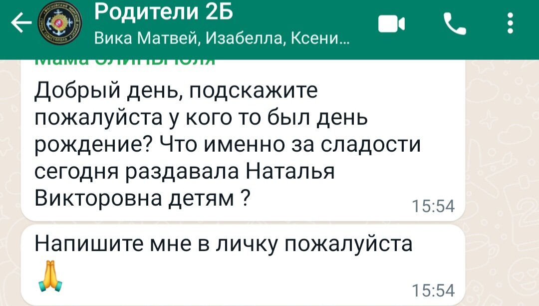 Эта статья лишний раз доказывает, насколько сложно устраивать праздники с угощением в детском коллективе. Все дети со своими пищевыми особенностями. Угодить - очень сложно. Недавно у одноклассника сына - Ариета - был День Рождения. Свои 8 лет он решил отметить и с классом. Его мама, согласовав все с учителем, после уроков принесла в школу несколько пицц, соки и небольшие пирожные-корзиночки. Об этом я узнала от своего сына по дороге из школы. Он, довольный, рассказывал, что есть вовсе не хочет, потому что у Ариета был День Рождения, и они все объелись пиццей и вкусными пирожными с фруктами. Я только порадовалась, потому что не всегда сын нормально обедает в школе: то суп ему не тот, то второе он не ел... А нам в тот день после школы еще нужно было идти на английский и, спасибо маме Ариета, сын был сыт. Но вскоре в школьный родительский чат пришло вот такое сообщение от мамы нашей одноклассницы: В чат тут же полетели сообщения любопытных мам, вроде: "А что случилось?", "Что у вас произ