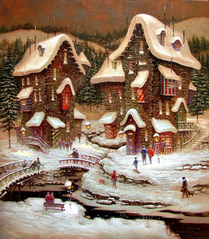 "Мизантроп, социопат, оптимист, мотоциклист и романтик" - так пишет о себе художник Дмитрий Крутоус. Его работы - это волшебство какое-то... Что-то из глубокого детства и добрых книжек. Хоть и зимний - но такой теплый городок.... Здесь нет места зависти, недоброжелательности или ненависти... Всё так душевно, что немедленно хочется найти такой городок и поселиться в этой сказке. Никакие морозы не страшны там, где обогреваются теплом сердец! Пряничные домики, фонари, каток, и много-много человечков... Они спокойные, миролюбивые и хозяйственные. Занимаются своими делами, гуляют, общаются. В каждой картине - история, рассказ, немножко сказочный и совсем нескучный. Получаешь такое удовольствие, когда их рассматриваешь! Надо же социопат, мизантроп, усатый байкер и такую волшебную сказку создает! #домишки #зимний городок #зимняя сказка #рождество #живопись #современные художники Другие публикации: ЗИМНЕЕ НАСТРОЕНИЕ!!! Птички - синички "Каждый день- это повод для того, чтобы стать лучше"