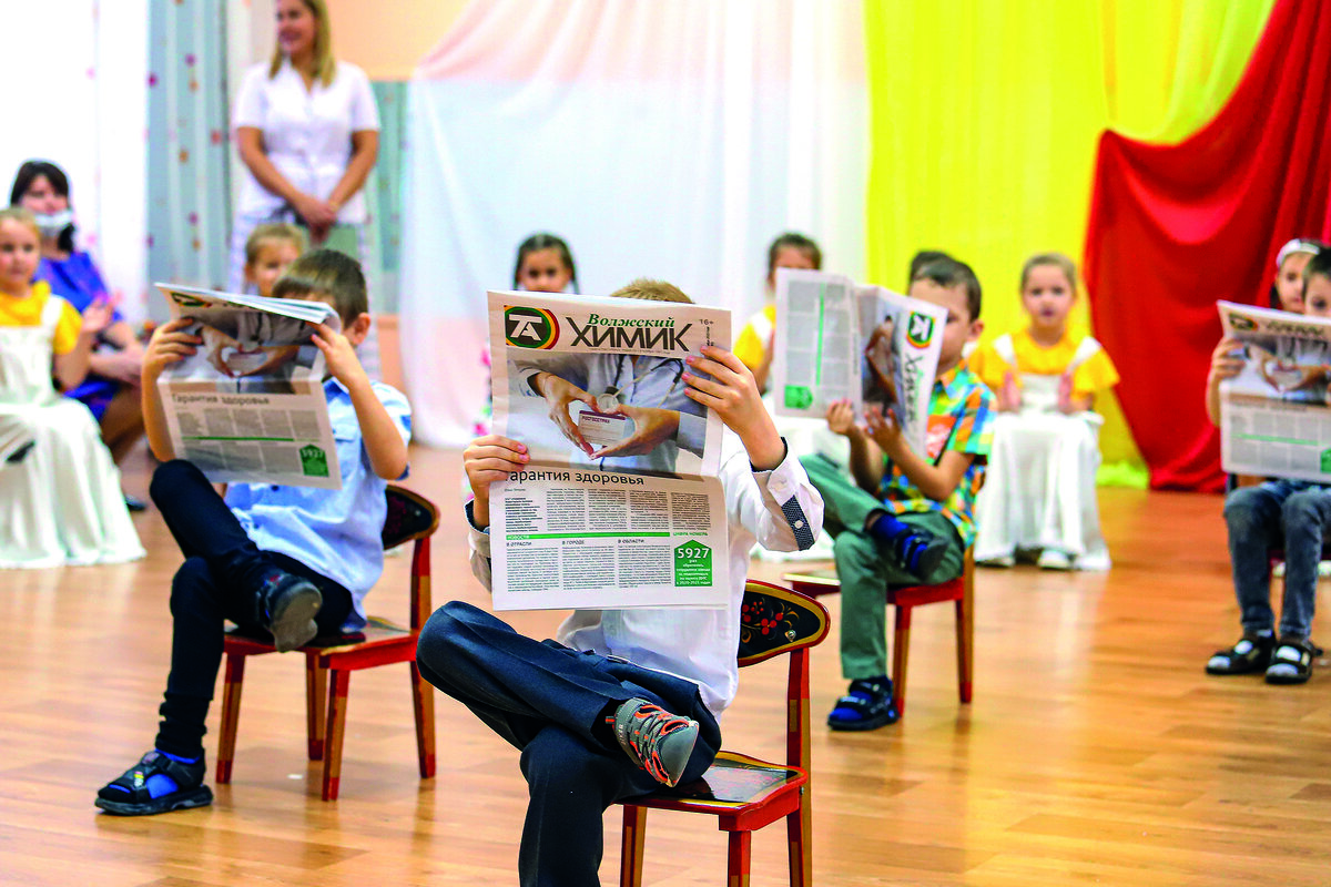 Сорокалетие «Волжского химика» редакция газеты отметила… в детском саду. Почему именно там? Подробности – в нашем праздничном репортаже. В кругу друзей Если бы с помощью улыбок можно было бы вырабатывать энергию, в этот день её хватило бы для всего Тольятти: сияли дети, молодели взрослые. Общались легко, а расставались с сотней «спасибо». Пожалуй, ни один цех ТОАЗа не отмечал свой день рождения, как редакция корпоративной газеты, – на тематическом утреннике в детском саду. Всё началось с инициативы руководства «Тюльпана». Сотрудники детсада – постоянные читатели «Волжского химика», а воспитанники часто узнают на страницах газеты фотографии своих родителей. О сорокалетии корпоративного издания ТОАЗа здесь знали и решили подготовить для нас сюрприз. Около месяца ребята вместе со своими наставниками готовились, рассказывает Ирина Красильникова, заведующая детского сада, и вот праздник начинается, а мы – работники редакции, стали его зрителями. Танцы в исполнении дошкольников – всегда заба