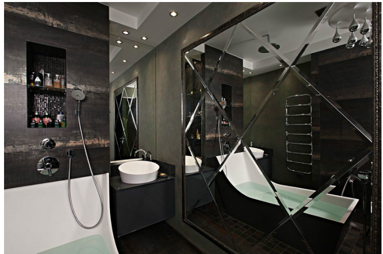 Чаще всего зеркальной фацетной плиткой отделывают ванную