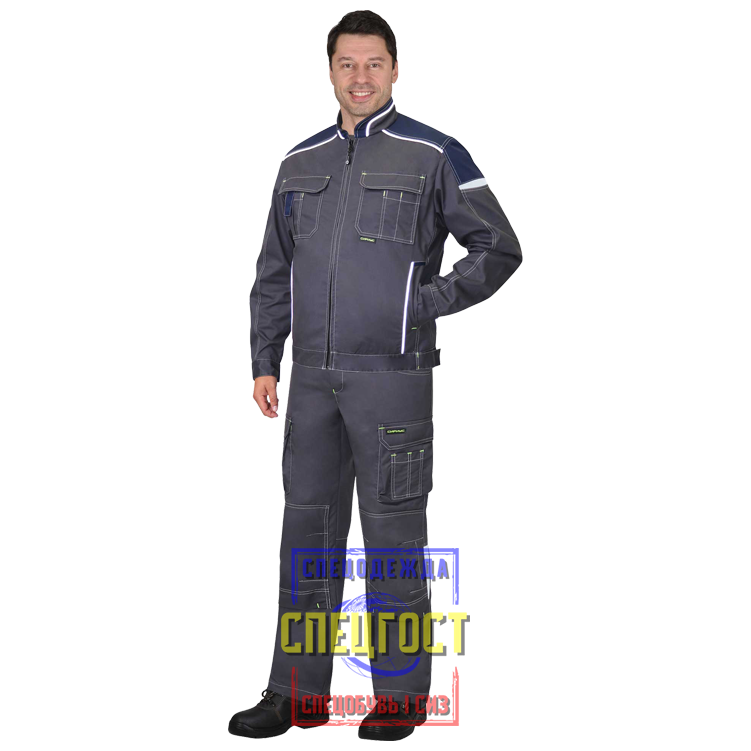 Костюм мужской “СИРИУС-Джет” изготовлен из ткани “Механический стрейч”.