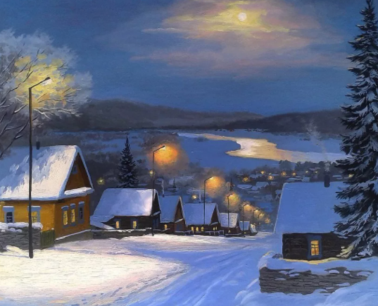 Зимний вечер в уральском селе - Изобразительное