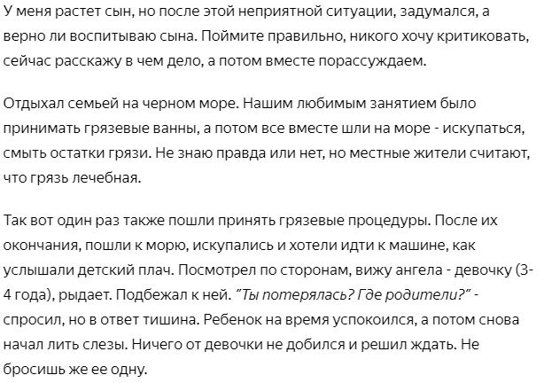 На берегу сидела маленькая девочка и рыдала. Решил узнать, что случилось, после чего задумался–правильно ли мы воспитываем детей