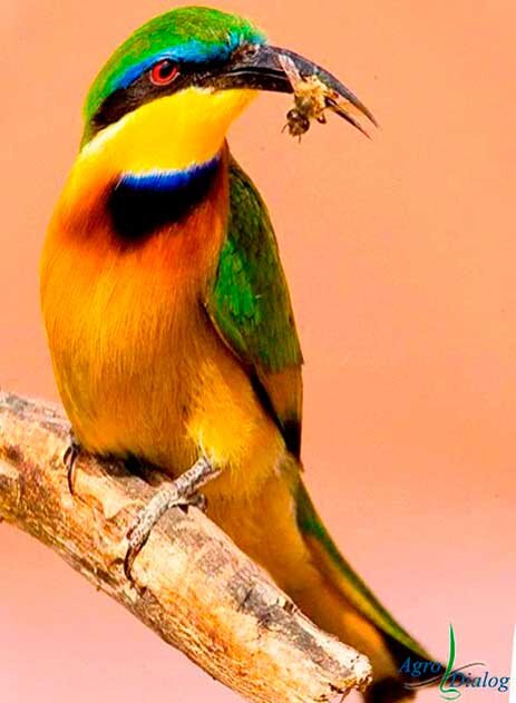 Пчелоед- птица с яркой и запоминающейся внешностью! Населяет преимущественно Южные регионы, поэтому в наших краях можно встретить всего две её разновидности! Излюбленными местами обитания,являются открытые степные пространства, карьеры, реки с обрывистыми берегами! Некрупная птица изящного телосложения, с тонким довольно длинным клювом, и размером тела до 28 см. Брюшко у пчелоеда голубое, спина и задняя часть шеи - рыже- коричневого цвета, крылья - смешанные из этих двух цветов. Над жёлтым подбородком находится чёрная полоса! Пчелоед- природный враг летающих насекомых. Питается- осами,пчелами,стрекозами,жуками и бабочками. С большим удовольствием поедает медоносных пчёл! Птица бьёт пойманное насекомое о твёрдую поверхность и тщательно раздавливает, чтобы не быть укушенным при проглатывании! Чтобы прокормить себя и своих птенцов, ежедневно нужно поймать около 230-350 насекомых, размером с пчелу. Пчелоед замечает летящее насекомое с расстояния 100 метров. Выдëргивая жало у пойма