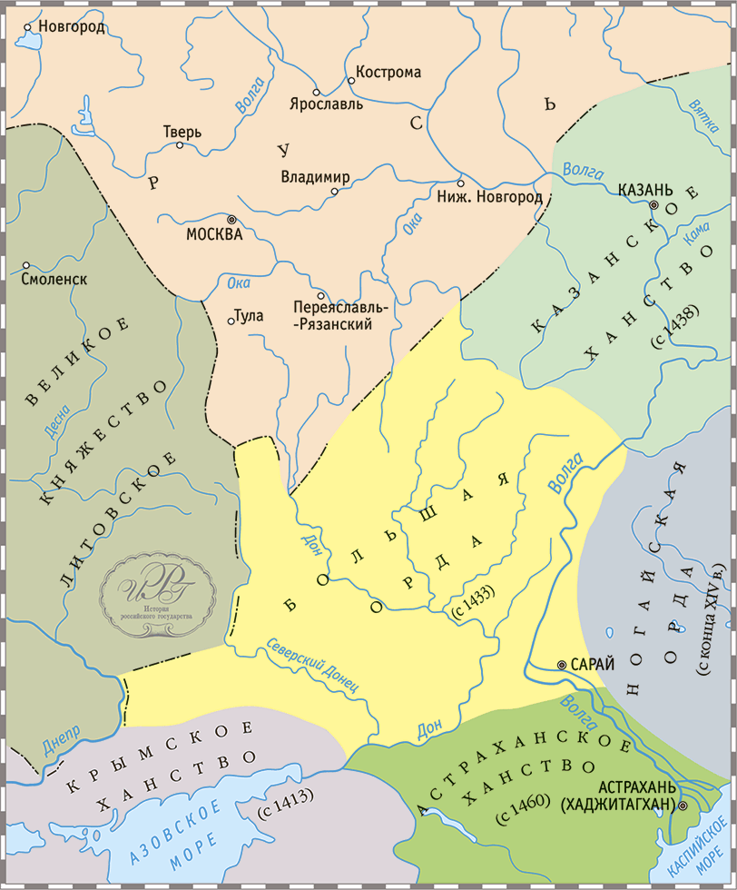 Историки много спорили о том, почему Иван III так долго ждал, прежде чем освободиться от ордынской зависимости – пусть номинальной, но унизительной для его монаршьего достоинства и для престижа государства. Хотя верховная власть Орды на деле ничего уже не значила, Иван не ездил с поклонами хану, перестал платить ему дань, был намного богаче и сильнее, все же в глазах иностранных государств великий князь продолжал оставаться вассалом «варварского» азиатского царства. В романтические времена исторической науки преобладало мнение, что тут сказалось влияние Софьи Палеолог: гордая византийская царевна была-де оскорблена положением супруги татарского данника. Но эта версия сомнительна. Во-первых, эмигрантке и бесприданнице, прежде жившей из милости при папском дворе, негде было набраться особенной гордости. Во-вторых, непохоже, чтобы человек склада Ивана Васильевича мог быть подвержен чьему-то влиянию. Ну и наконец, с момента «византийского» брака до разрыва с Ордой прошло цел