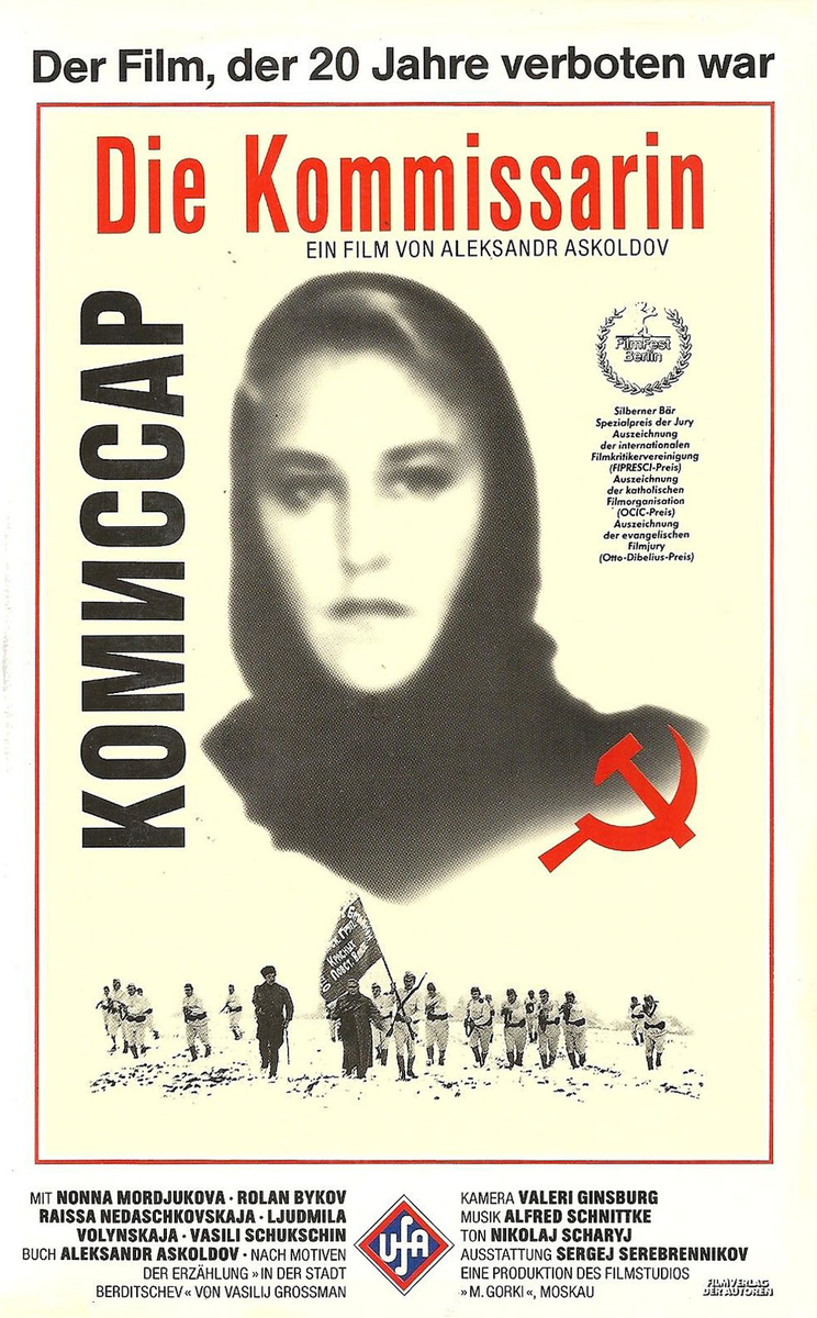 Фильм «Комиссар» (1967) повествует о самом ужасном, что может случиться с женщиной-комиссаром в разгар гражданской войны — она беременна. Перед ней стоит неразрешимая дилемма — стать матерью или отдать долг молодой республике. На первый взгляд ничего криминального в дипломной работе Александра Аскольдова на Высших режиссерских курсах нет. Тем более, что фильм снимался накануне празднования 50-летия Октябрьской Революции. Как раз в то время выходили десятки картин, поэтому на их фоне у фильма проблем не должно было быть. В главных ролях снялись всеми любимые актеры — Нонна Мордюкова, Ролан Быков и Василий Шукшин. Казалось бы фильм упакован по полной программе советских времен. Однако «Комиссар» был самым жестоким образом запрещен Госкино, Более того, ленту сочли поруганием идеалов Революции — она противоречила высоким целям и задачам классовой борьбы. Давайте разберемся, что криминального нашли чиновники от искусства в этой картине: По этим или другим причинам фильм был запрещен и отпра