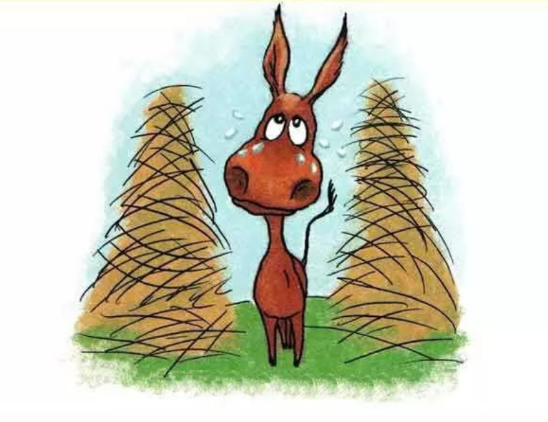 - Жан Буридан - это такой философ, он жил во Франции двести лет назад. И вот он придумал такой пример: если взять голодного осла и на равном расстоянии от него, справа и слева, разместить две одинаковые охапки сена, то осел неминуемо останется голодным.
