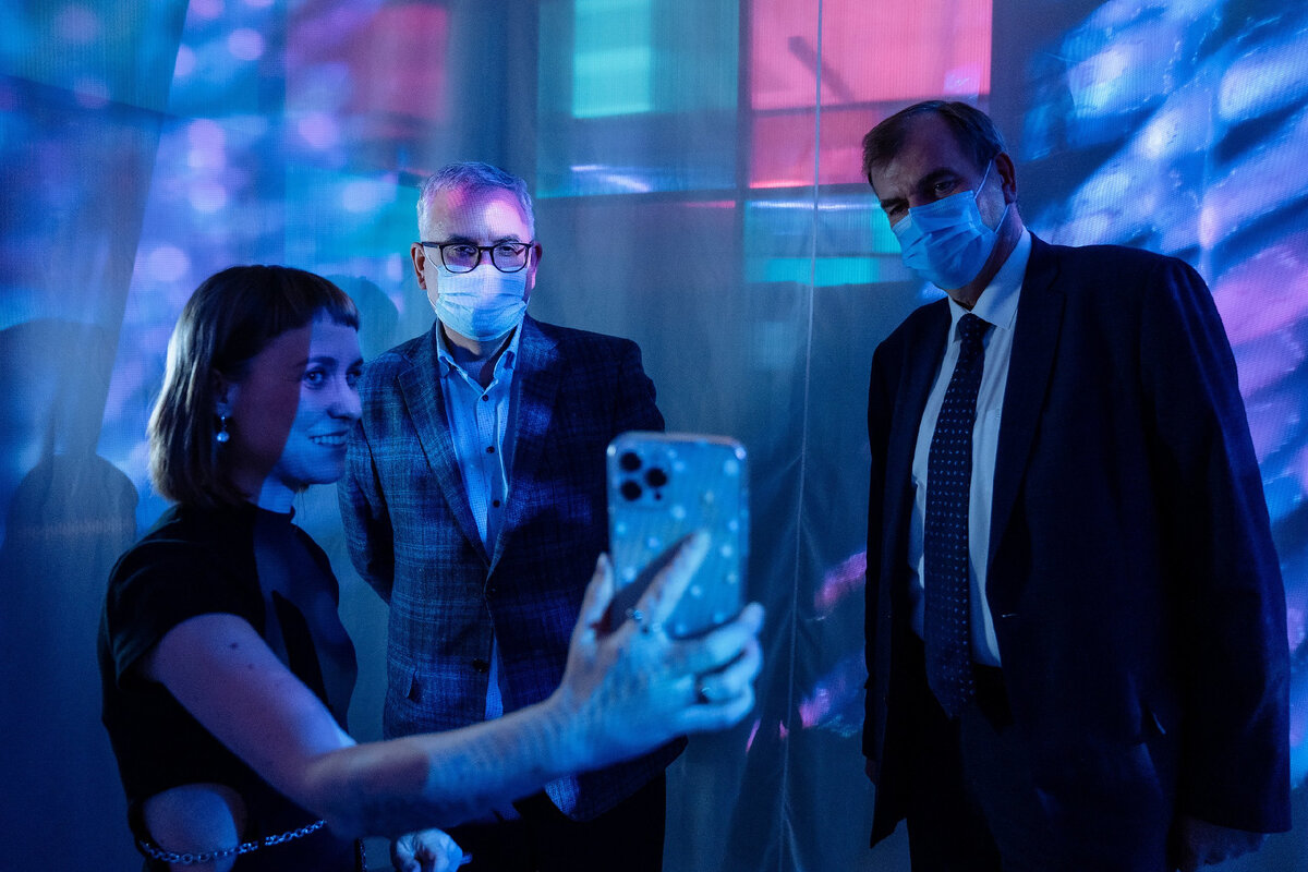 Первым проектом Лаборатории стала мультимедийная экспозиция «Экспансия реальности». На выставке представлено 15 произведений современного искусства: кинетические и световые скульптуры, цифровые объекты и продукты творчества искусственного интеллекта. Авторами экспонатов выступили студенты первой в России магистратуры Fashion Tech на базе СПбГУПТД и городские медиахудожники.