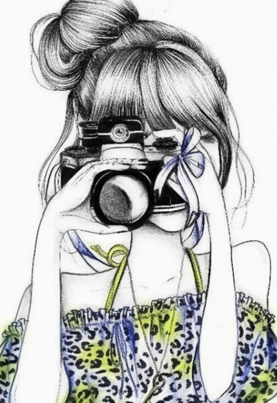 Нарисованная девушка с фотоаппаратом Девочка с фотоаппаратом мультяшная