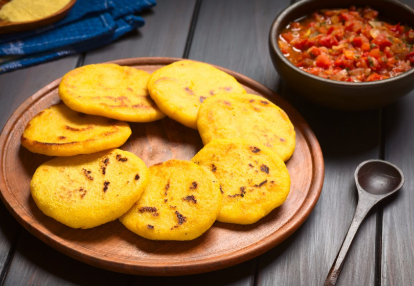 Арепа — это лепешки из маиса или муки, которые обжаривают на гриле, запекают или жарят на сковороде.
