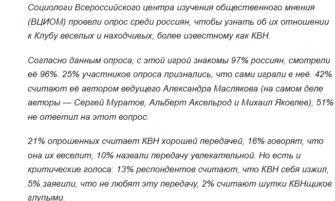 Вспомнили эту песенку из репертуара «Машины времени»? Очень грамотная и, главное очень глубокомысленная песенка! Можно сказать, на все времена! Потому что ПРАВДИВАЯ. А как говорил артист Фрунзик Мкртчян артисту Вахтангу Кикабидзе в фильме «Мимино», «Я тебе сейчас правду скажу, только ты не обижайся!». Милейший он конечно, человек, но наивный: а на что же обижаться, если не на правду? НА враньё никто не обижается, — а почему? Потому что вранью, если и не верят, то обязательно доверяют. Проверено — и не раз. Взять, к примеру, так называемые соцопросы. Им. конечно, хочется верить, но вопрос: зачем? Вот, например, этому: Не помню, кто сказал, что срок жизни ЛЮБОЙ развлекательной передачи на телевидении (не только на нашем) — ПЯТЬ лет. Дальше начинается туфта, но как же отказаться от такой жирной кормушки? Не хочется отказываться, потому что уже привыкли из неё кормиться! Так что как можно судить того же Шурика? По большому счёту: никак. Опять же возрасту него куда как почтенный, а на