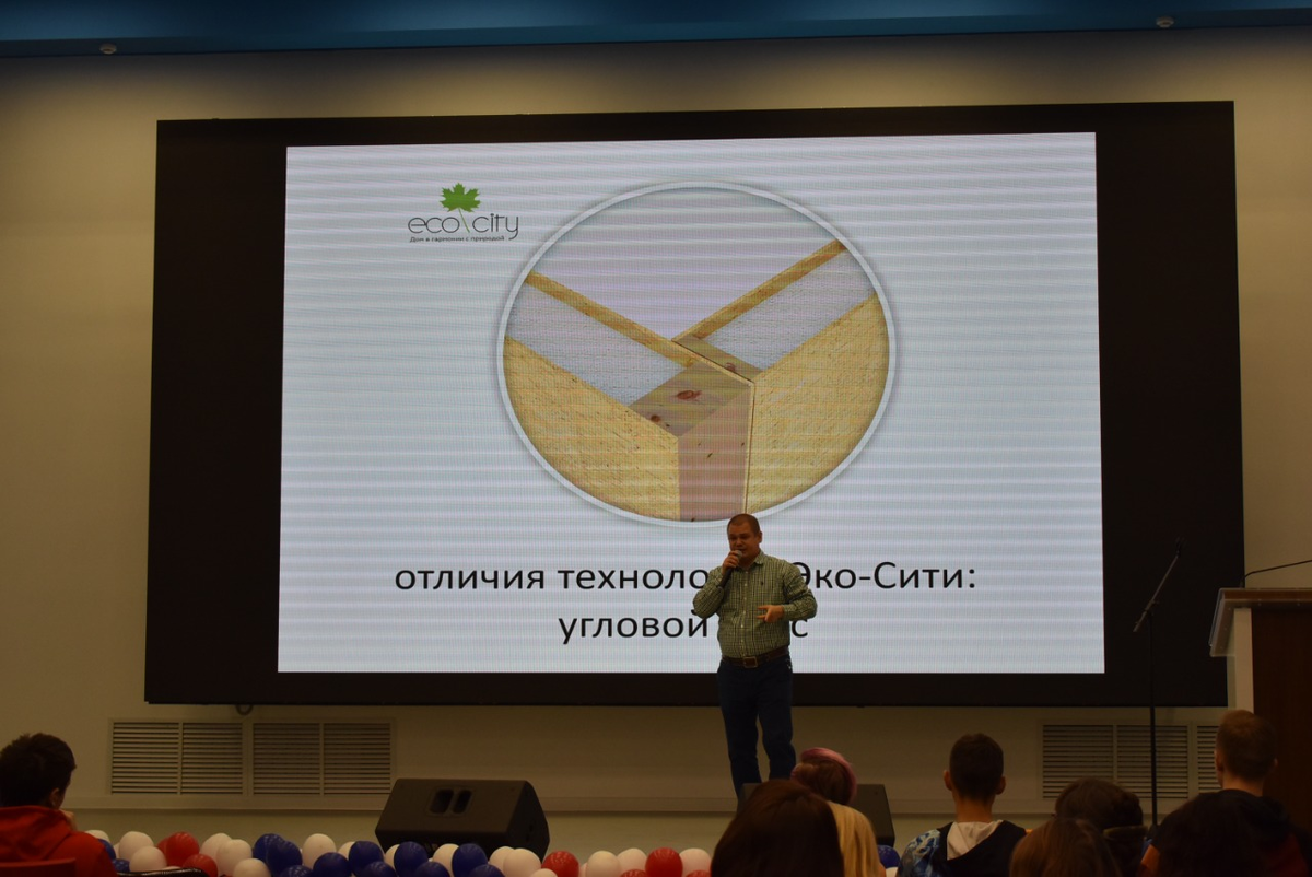 Петр Николаевич рассказал студентам специальности 08.02.01 "Строительство и эксплуатация зданий и сооружений" о достоинствах строительства каркасных домов по СИП-технологии, а так же об отличительных особенностях домов, построенных компанией.
