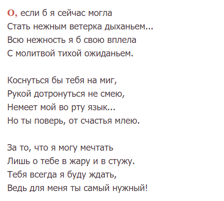 О, если б я сейчас могла Стать нежным ветерка дыханьем...