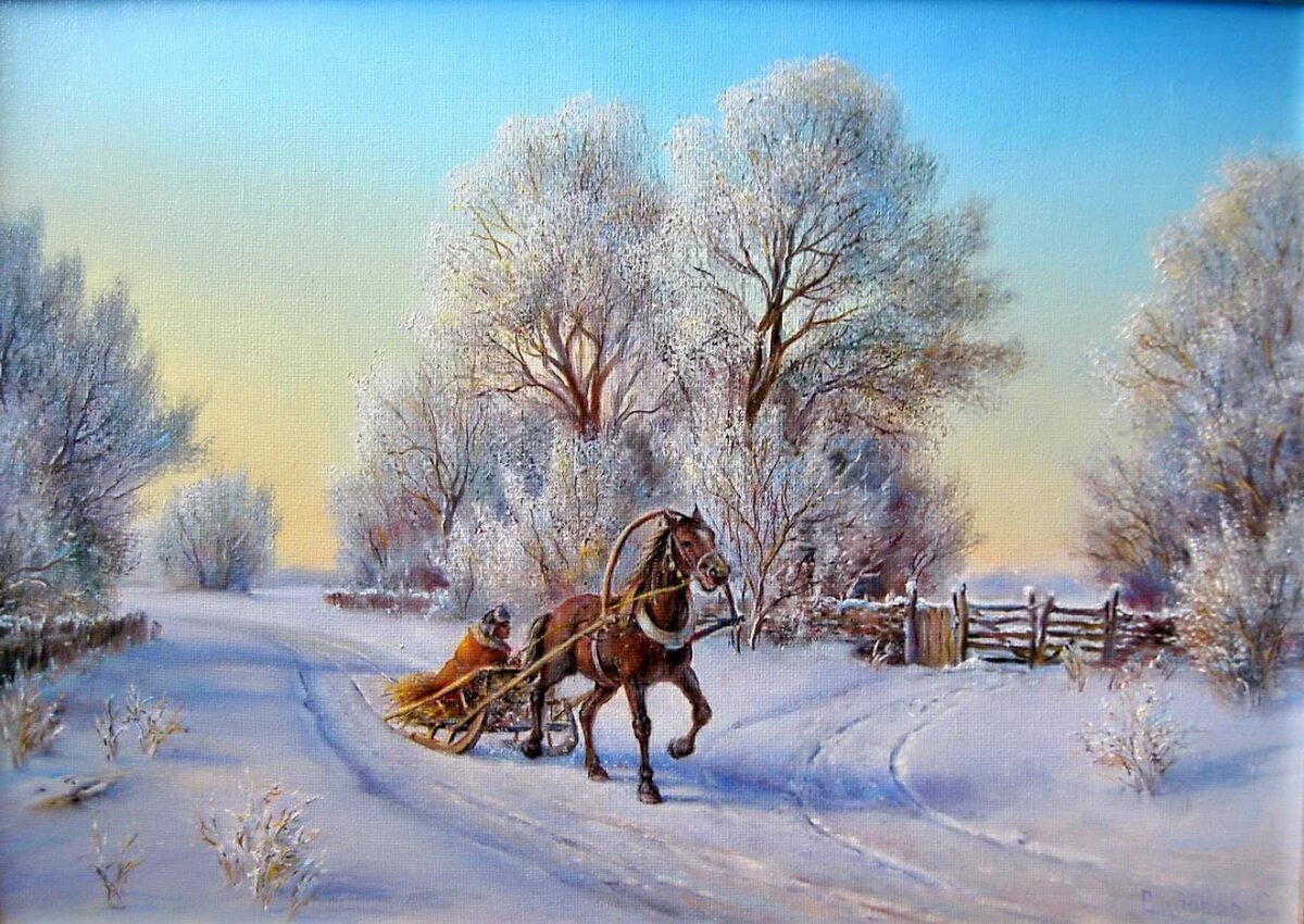 - Слышны песни снегирей, а сорока прячется под кровлю — к наступлению вьюги.