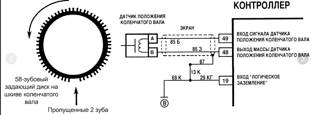 Эти импульсы помогают определить, в каком угловом положении находится коленвал. В программе прописано, на каком импульсе нужно подавать искру и топливо в цилиндры.