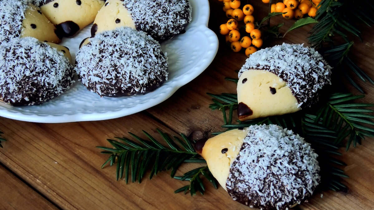 Всем привет! Сегодня поделюсь с вами таким замечательным рецептом очень- очень вкусного песочного печенья. Потрясающе нежное и тающее печенье. Оно настолько милое и мимимишное, что точно понравится вашим деткам. К лепке ежат обязательно подключите детей! Процесс этот очень увлекательный и приятный, т.к тесто супер пластичное, не крошится и легко формуется. А как интересно его потом украшать шоколадом и кокосовой стружкой! И одно сплошное удовольствие пить с ними чай! Видеорецепты: Ингредиенты: -350 гр пшеничной муки в/с -170 гр мягкого сливочного масла -100 гр сахарной пудры -1 яйцо -1 стол.л сметаны -10 гр ванильного сахара -1 ч.л разрыхлителя *Дополнительно* -70 гр темного шоколада -1 стол.л растительного масла -кокосовая стружка Приготовление В чаше соединить мягкое масло, ванильный сахар и сахарную пудру. Всё взбить миксером до посветления буквально 1-2 минуты. Затем добавить яйцо и сметану, коротко взбить миксером. К муке добавить разрыхлит