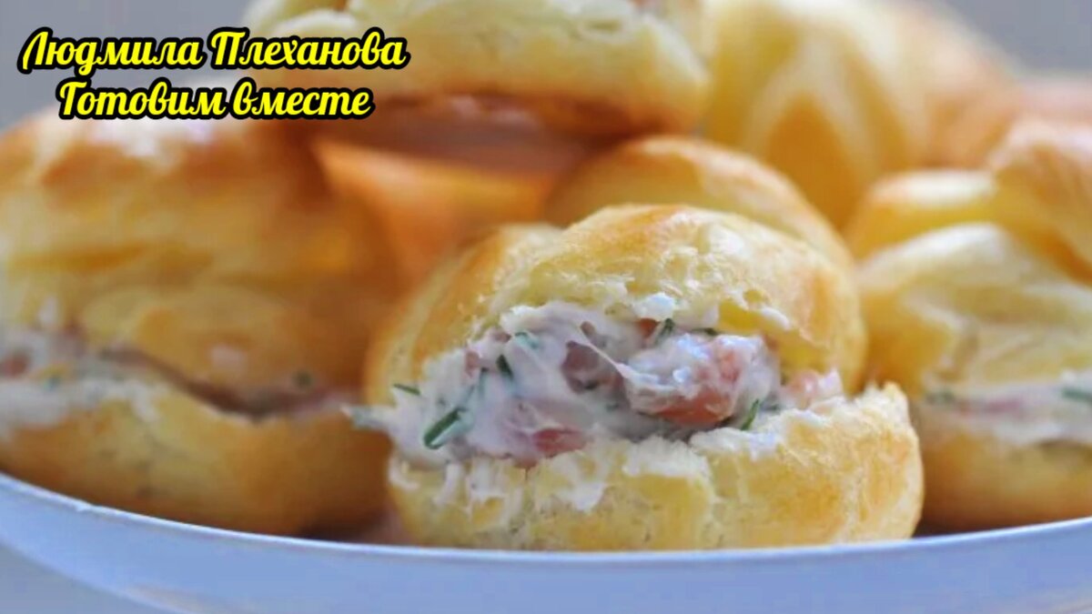 Такая закуска делается очень просто - Вам даже тесто делать не придётся. А солёную сёмгу или форель в этой закуске можно запросто заменить на более дешёвую рыбу - соленую горбушу. Закуска получается очень вкусная, нежная с интересным вкусом. Обычно она съедается очень быстро. Итак начнём. Берём упаковку готового слоёного дрожжевого теста, немного раскатываем тесто и вырезаем стаканом кружочки. Смазываем кружочки взбитым яйцом и выпекаем в духовке в течение 15 минут. Получаются, можно сказать, профитроли. Для начинки берем свежий огурец и режем кубиками. Соленую красную рыбу также режем кубиками. Укроп мелко режем. Смешиваем в чаше свежий огурец, красную рыбу, укроп и творожный сыр. Начинка для нашей закуски готова. Разрезаем получившиеся булочки, полые внутри, напополам и заполняем их начинкой. Наша закуска готова. 👉А здесь САМЫЙ НЕОБЫЧНЫЙ СПОСОБ ЗАСОЛИТЬ КРАСНУЮ РЫБУ (ФОРЕЛЬ, ГОРБУШУ, СЁМГУ). А ВКУС - НЕВЕРОЯТНЫЙ РЕЦЕПТ: Слоёное бездрожжевое тесто - 500 г (1 упаковка) Яйцо