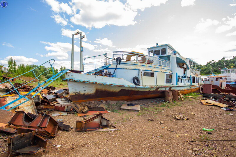 Прогулочный теплоход типа "Москвич" проекта 544 в отстойнике где пилят суда на металл