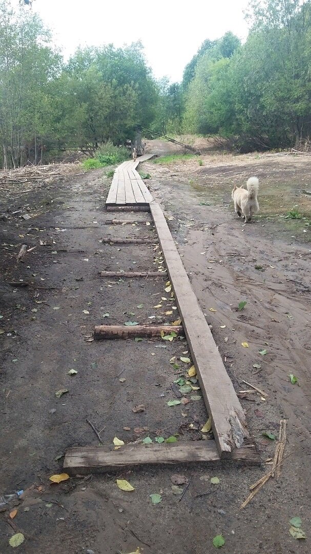 Совершая пешую прогулку из района "опорного" в район "Заводской улицы" обнаружил, что какие-то ВОРЫ нагло сняли настил тротуаров, совсем недавно построенных! Возмутился, конечно.