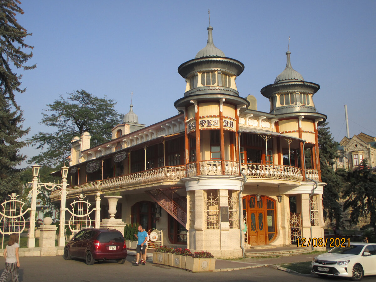 Побывав летом 2021 года в Пятигорске, я имел удовольствие видеть одно из самых красивых зданий этого города - кофейню Гукасова. Оно находится в самом центре города у главного входа в парк Цветник со стороны проспекта Кирова, в доме 23. Это двухэтажное здание с двумя башенками по праву является визитной карточкой Пятигорска. О нём и о шикарной даче «Эльза» я и хочу рассказать.